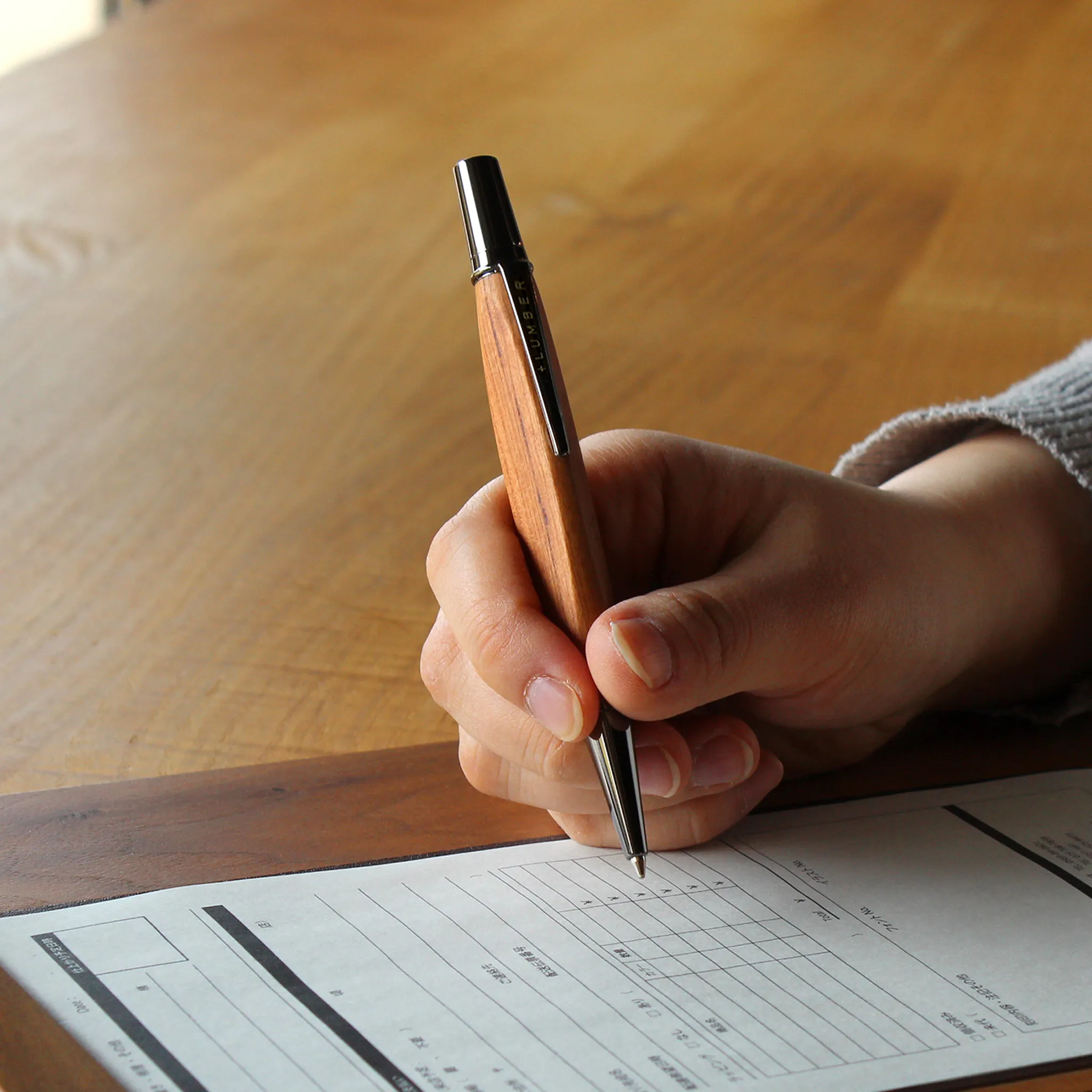ボールペンは会議や商談、メモなど日常的に使用されるため、自然と手に取られる回数が増えます。特に木製ボールペンは、手に触れたときの質感や見た目の違いから、一般的なペンとは明確に差別化されます。
